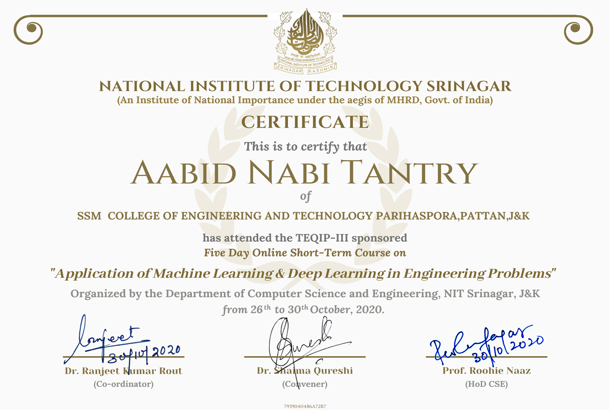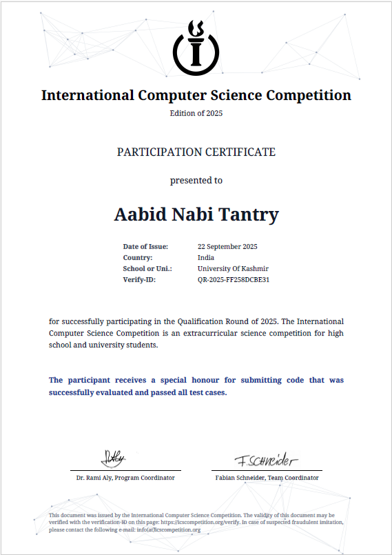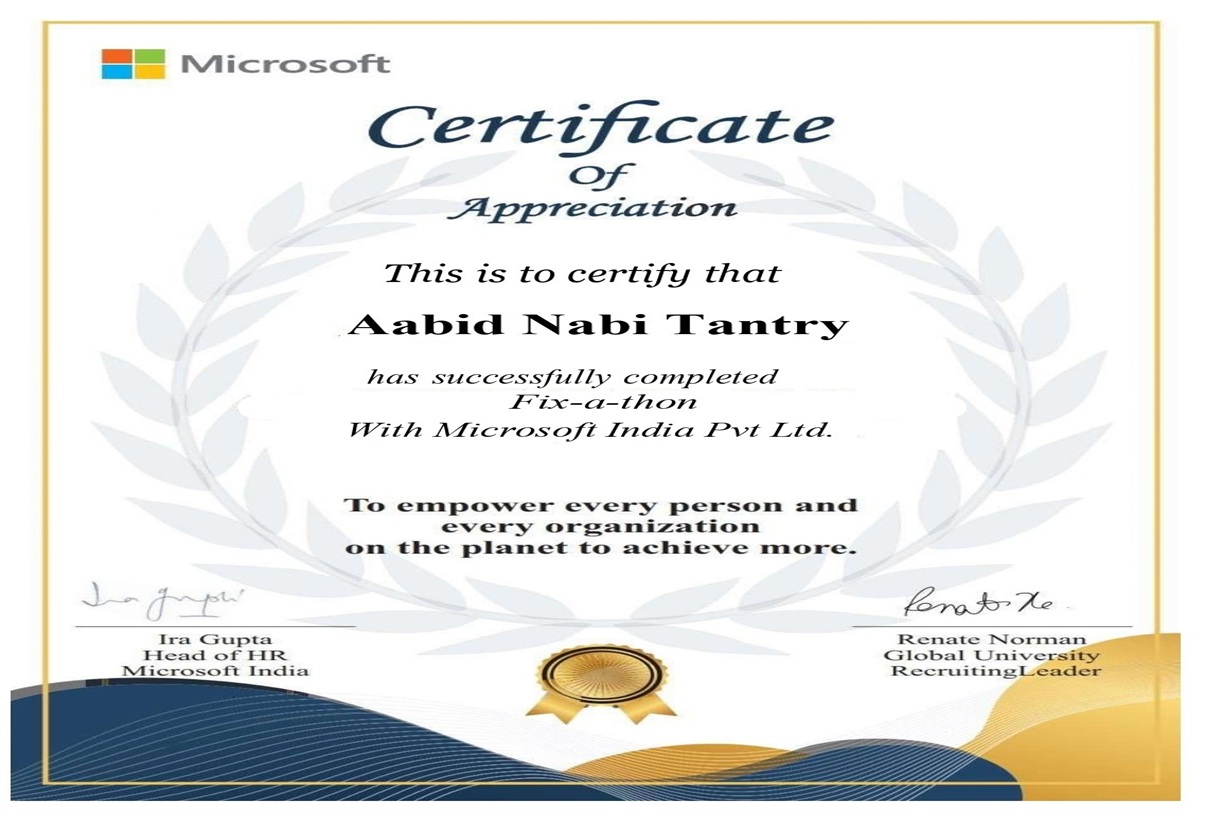 I'm Aabid Nabi, a Computer Engineering graduate and passionate Software Developer with over two years of experience in crafting interactive, user-friendly web applications. Currently, I am pursuing my M.Tech in Computer Science and Engineering at NIT Srinagar, further strengthening my expertise in advanced technologies and research. Alongside my focus on Software development, I am actively exploring cybersecurity and cloud computing to broaden my technical horizons. As a dedicated technology enthusiast, I enjoy staying ahead of the curve by exploring emerging trends, researching innovative solutions, and applying them to solve real-world challenges. My journey is driven by a constant desire to learn, grow, and contribute meaningfully to the tech community. Outside of coding, I love immersing myself in nature and reading blogs about technology and design. Feel free to explore my site or reach out to know more about me.