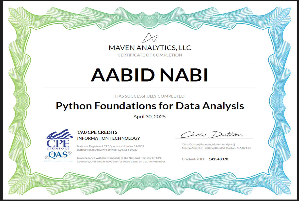 - Learning advanced data science tools including Python, R, and Excel for finance.